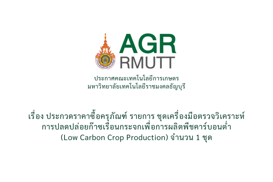 ด้วยคณะเทคโนโลยีการเกษตร มหาวิทยาลัยเทคโนโลยีราชมงคลธัญบุรี มีความประสงค์จะประกวดราคาซื้อครุภัณฑ์ รายการ ชุดปฏิบัติการวิเคราะห์สารตกค้างในการผลิตพืชมูลค่าสูงสู่มาตรฐานอาหารปลอดภัย จำนวน 1 ชุด ด้วยวิธีประกวดราคาอิเล็กทรอนิกส์ (e-bidding) ราคากลางของงานซื้อในการประกวดราคาครั้งนี้ เป็นเงินทั้งสิ้น 4,019,200.- บาท (สี่ล้านหนึ่งหมื่นเก้าาพันสองร้อยบาทถ้วน) รายละเอียดตามไฟล์แนบ