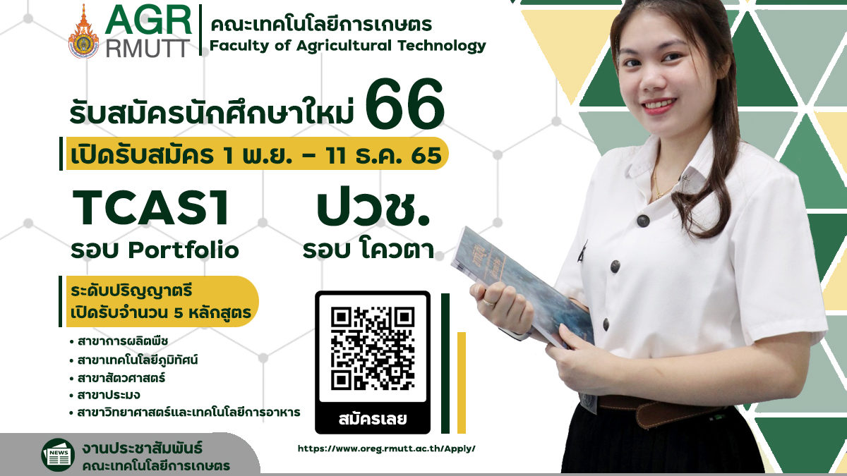 คณะเทคโนโลยีการเกษตร มหาวิทยาลัยเทคโนโลยีราชมงคลธัญบุรี เปิดรับสมัครนักศึกษาใหม่ ประจำปีการศึกษา 2566