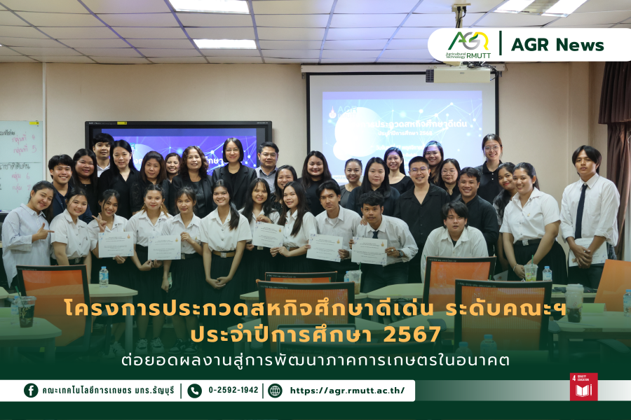 วันที่ 17 พฤศจิกายน 2568 คณะเทคโนโลยีการเกษตร มหาวิทยาลัยเทคโนโลยีราชมงคลธัญบุรี จัดกิจกรรม โครงการประกวดสหกิจศึกษาดีเด่น ประจำปีการศึกษา 2568 ณ ห้องอบรม CK–05 ศูนย์รังสิต เพื่อคัดเลือกผลงานปัญหาพิเศษของนักศึกษาจากทุกสาขาวิชาในระดับคณะ ก่อนส่งตัวแทนเข้าร่วมการประกวดในระดับมหาวิทยาลัยต่อไป