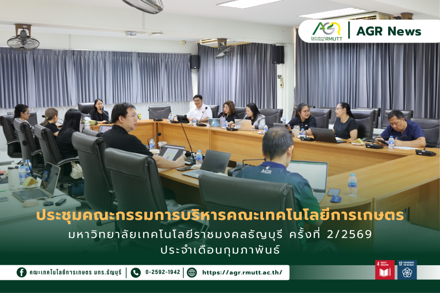 25 กุมภาพันธ์ 2026ประชุมคณะกรรมการประจำคณะเทคโนโลยีการเกษตร มทร.ธัญบุรี ครั้งที่ 3/2569 เดินหน้าขับเคลื่อนพันธกิจ สอดรับยุทธศาสตร์มหาวิทยาลัย