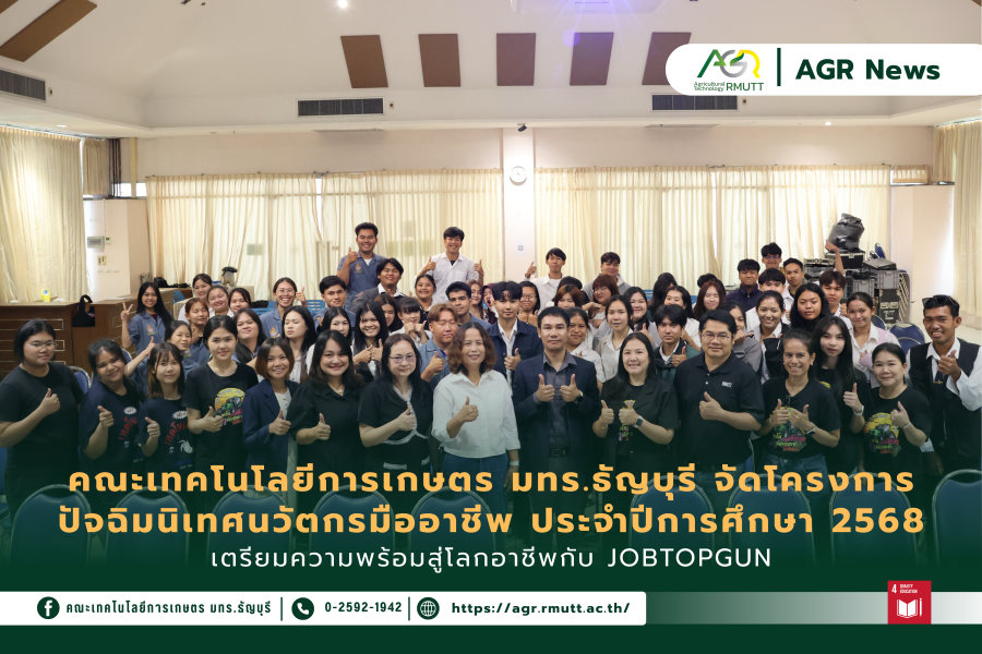 10 มีนาคม 2026คณะเทคโนโลยีการเกษตร มทร.ธัญบุรี จัดโครงการบ่มเพาะผู้ประกอบการรุ่นใหม่ด้านเกษตรอาหาร สร้างแรงบันดาลใจสู่ Startup